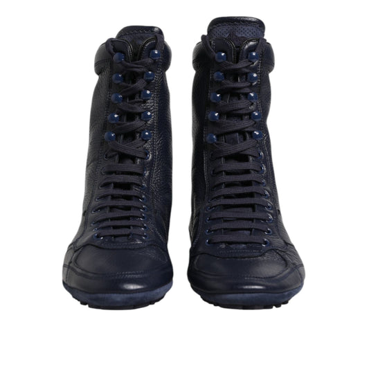 Dolce & Gabbana Dark Blue Leather KING High Top Sneakers Shoes