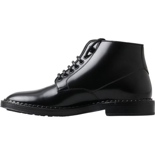 حذاء الكاحل من الجلد الأسود من دولتشي آند غابانا