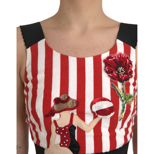 فستان دولتشي آند غابانا ميدي بدون أكمام بنقشة زهور باللونين الأحمر والأبيض