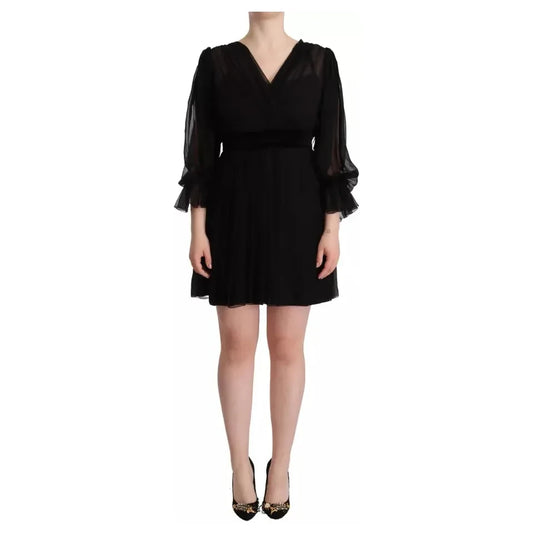 فستان دولتشي آند غابانا أسود قصير الأكمام بفتحة رقبة على شكل حرف V وقصة A