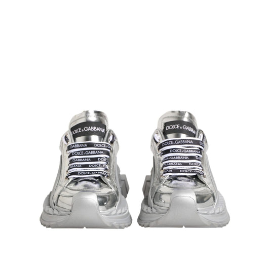 Dolce & Gabbana Silver Leather Super Queen Sneakers Shoes