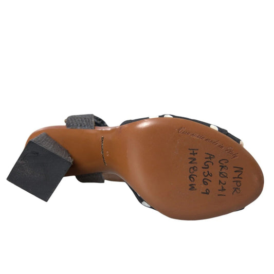 Dolce & Gabbana Black Polka Dot Leather Heels Sandals Shoes