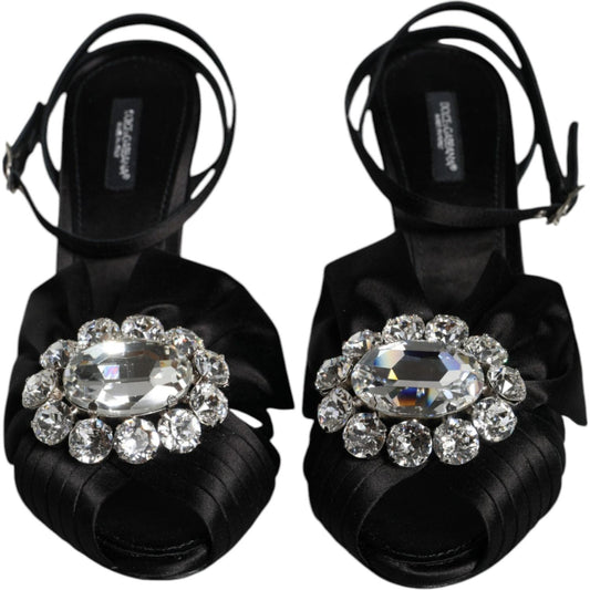 حذاء صندل من دولتشي آند غابانا بحزام للكاحل من الكريستال الأسود
