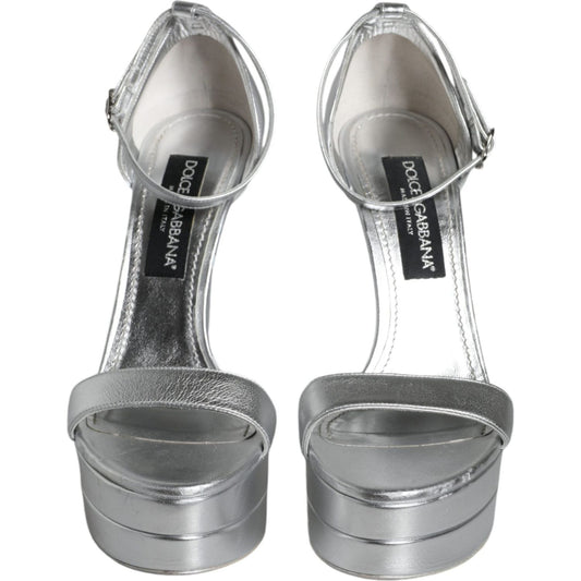 صندل كيرا من دولتشي آند غابانا مصنوع من الجلد باللون الفضي