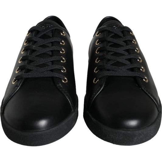حذاء سنيكرز كلاسيكي من الجلد باللون الأسود الذهبي من دولتشي آند غابانا