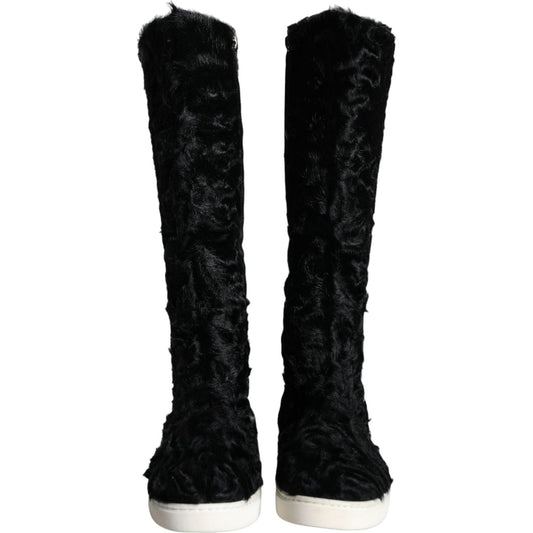 حذاء طويل حتى الركبة من دولتشي آند غابانا مصنوع من الجلد الأسود