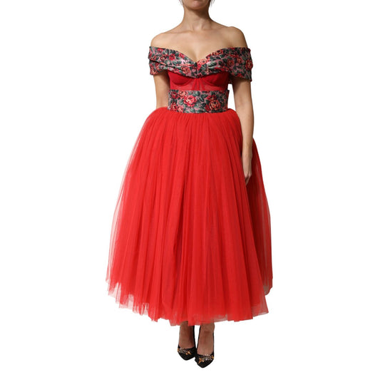 Dolce & Gabbana Red Floral Print Nylon A-line Midi Dress