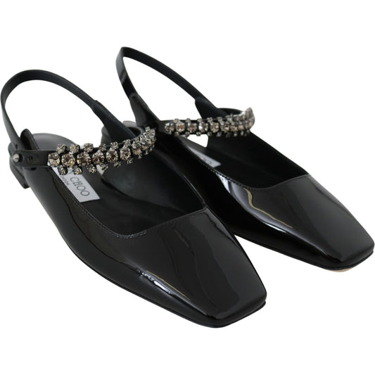 Jimmy Choo Black Patent Leather Mahdis Flat Shoes
