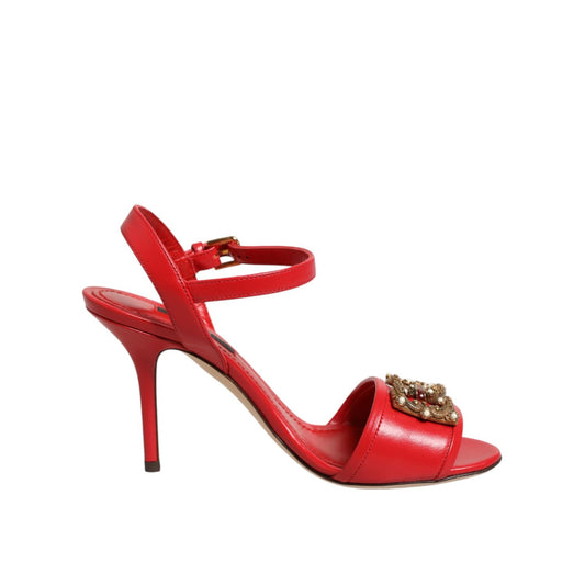 Dolce & Gabbana Red Leather DG AMORE Heels Sandals Shoes