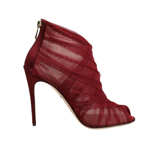 Dolce & Gabbana Red Tulle Ankle Boots Stiletto Heels Shoes