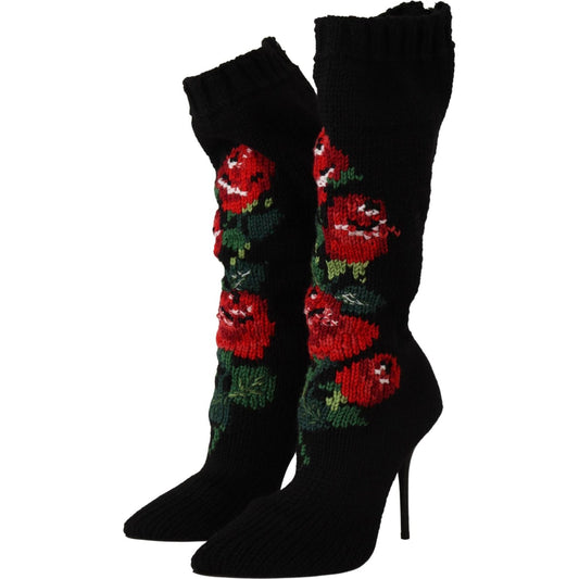 Dolce & Gabbana Black Stretch Socks Red Roses Booties Shoes