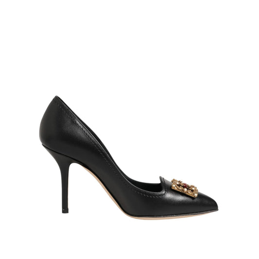 Dolce & Gabbana Black Leather DG Amore Heels Pumps Shoes
