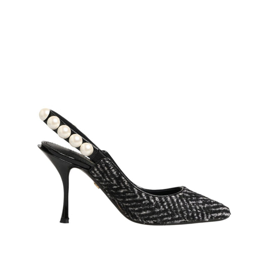 Dolce & Gabbana White Black Chevron Faux Pearl Slingbacks Shoes