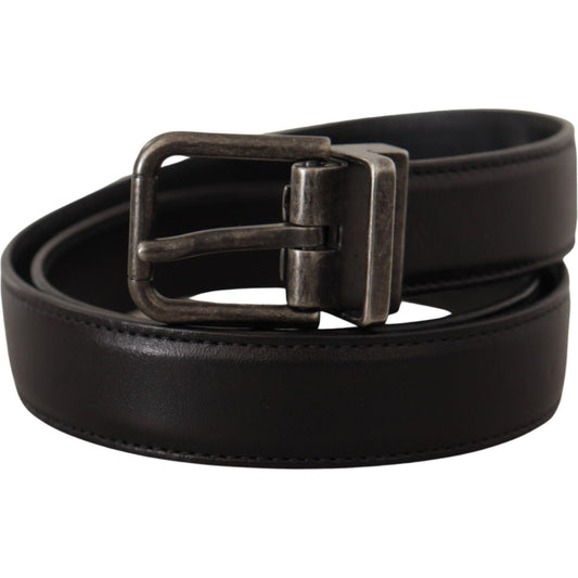 Dolce & Gabbana Belt Black Calf Leather Silver Tone Metal Buckle