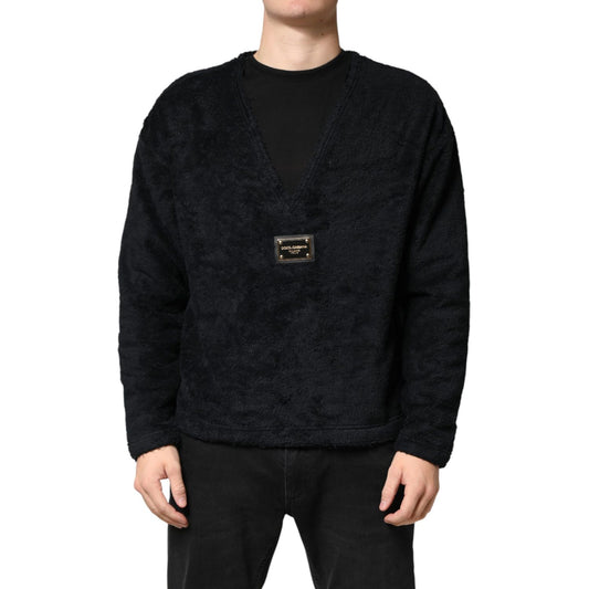 Dolce & Gabbana Black Cotton V-Neck Men Sweatshirt Sweater