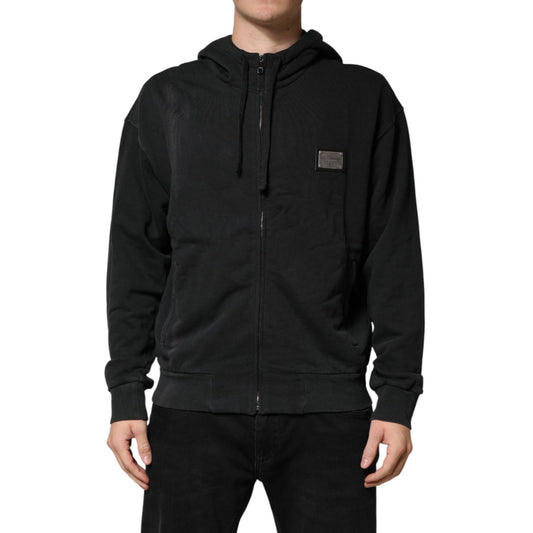 Dolce & Gabbana Black Full Zip Hooded Men Sweatshirt Sweater