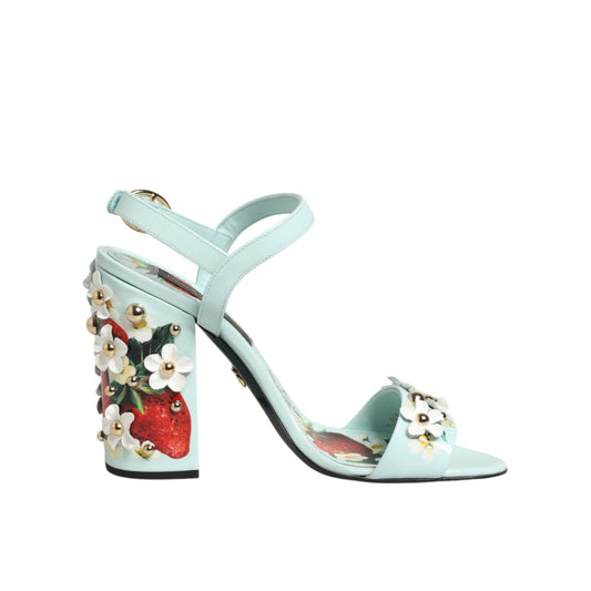 Dolce & Gabbana Mint Green Floral Studs Heels Sandals Shoes
