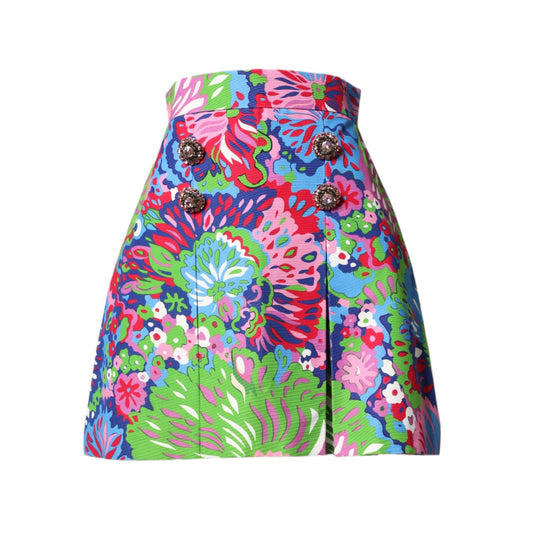 Dolce & Gabbana White Floral Brocade High Waist Mini Skirt