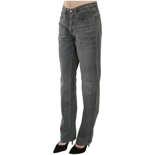 Just Cavalli Gray Washed Mid Waist Straight Denim Pants Jeans