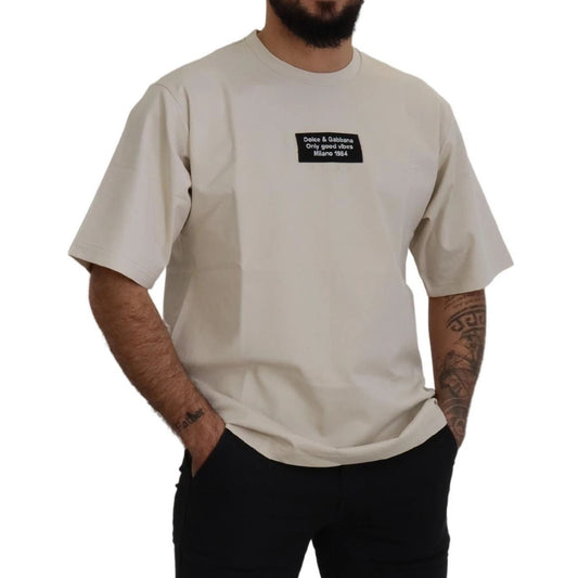 Dolce & Gabbana White Cotton Logo Print Crew Neck Men T-shirt
