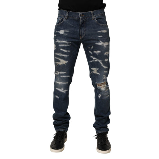 Dolce & Gabbana Blue Tattered Cotton Skinny Men Denim Jeans