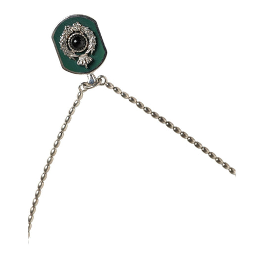 Dolce & Gabbana Silver Tone Brass Beaded Resin DG Logo Chain Necklace