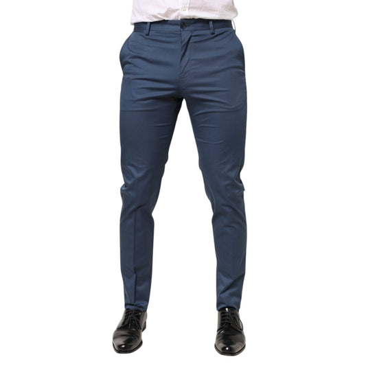Dolce & Gabbana Blue Cotton Mid Waist Dress Men Trouser Pants