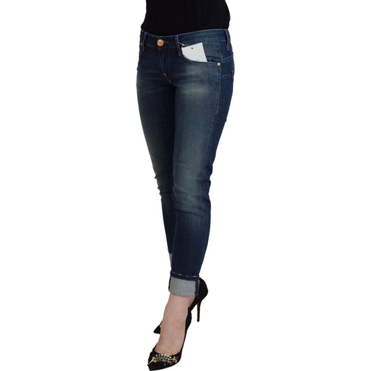 Acht Blue Cotton Low Waist Skinny Denim Folded Hem Jeans