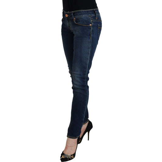 Acht Blue Cotton Low Waist Slim Fit Denim Women Trouser Jeans