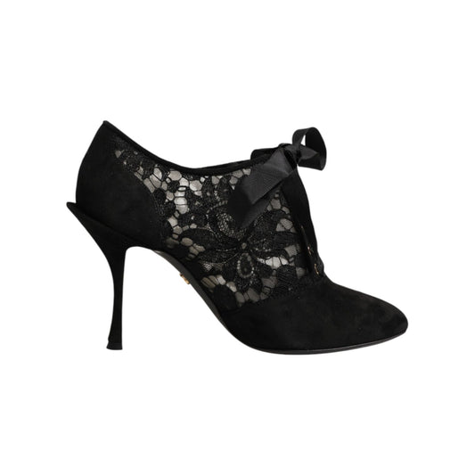 Dolce & Gabbana Black Floral High Heels LACE-UPS Pumps Shoes