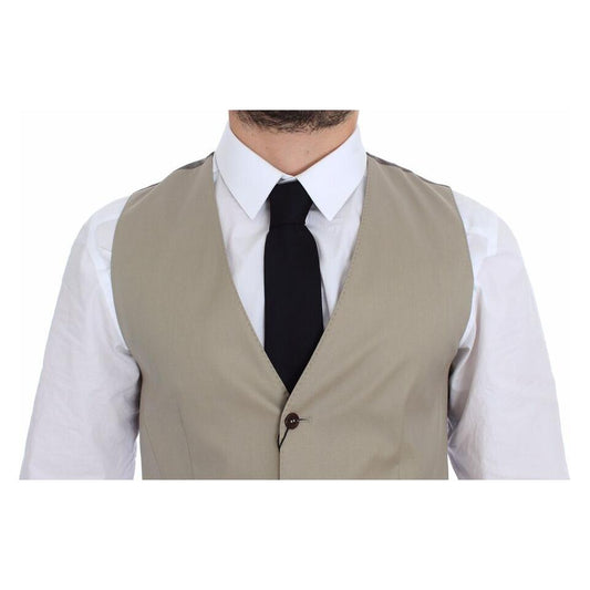 Dolce & Gabbana Beige Cotton Silk Slim Fit Waistcoat Vest