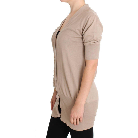 Dolce & Gabbana Beige Knitted Cotton Polo Cardigan Sweater