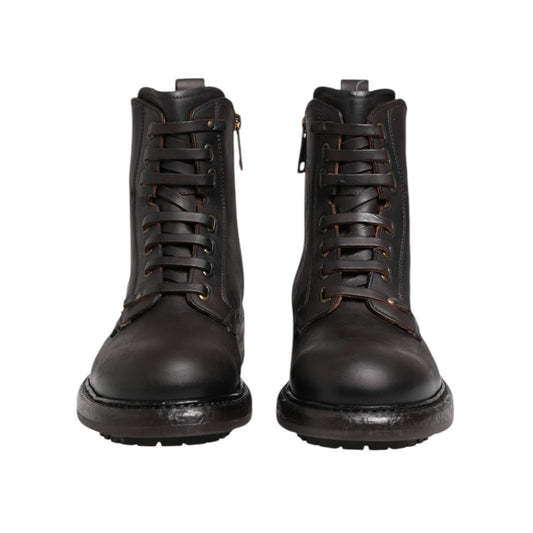Dolce & Gabbana Dark Brown Leather Lace Up Mid Calf Boots Shoes