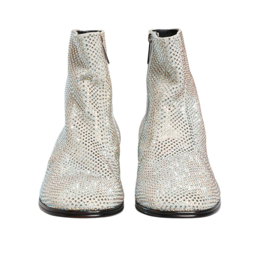 Dolce & Gabbana White Strass DG Logo Heels Ankle Boots Shoes