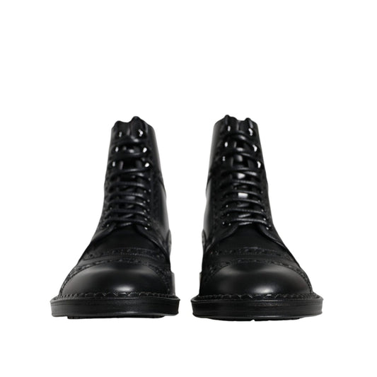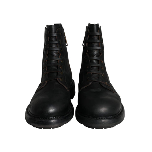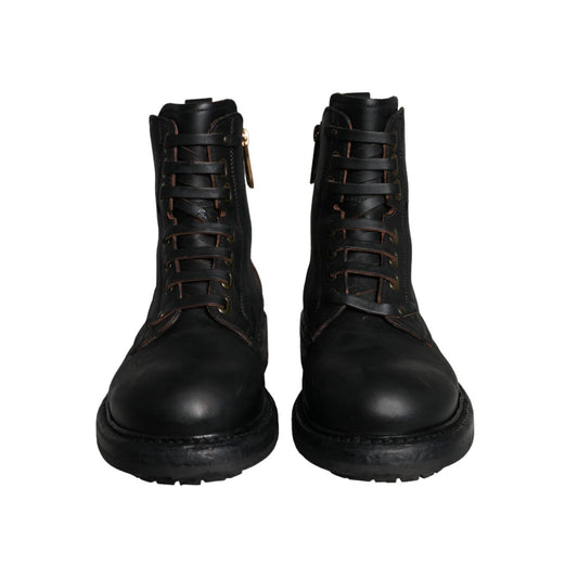 Dolce & Gabbana Black Leather Military Combat Boots Shoes