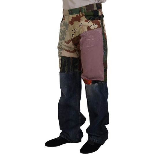 Dolce & Gabbana Multicolor Silk Patchwork Men Denim Jeans