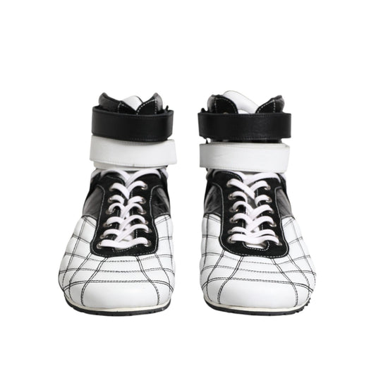 Dolce & Gabbana Black White Leather High Top Sneakers Shoes