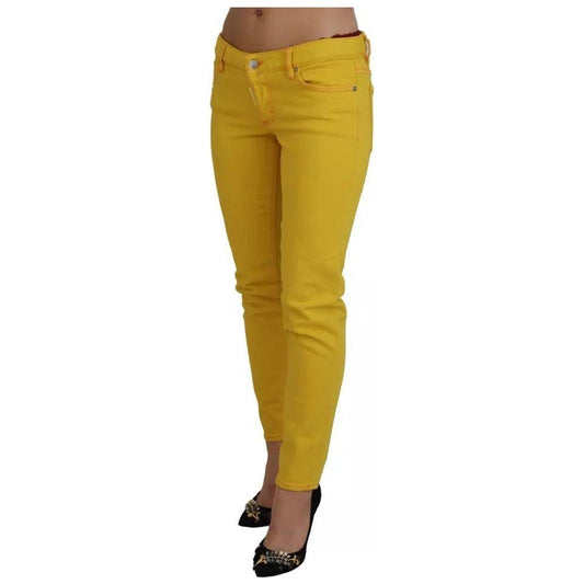 Dsquared² Yellow Cotton Low Waist Cropped Jennifer Denim Jeans