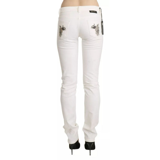 Just Cavalli White Cotton Slim Fit Mid Waist Skinny Trouser Jeans
