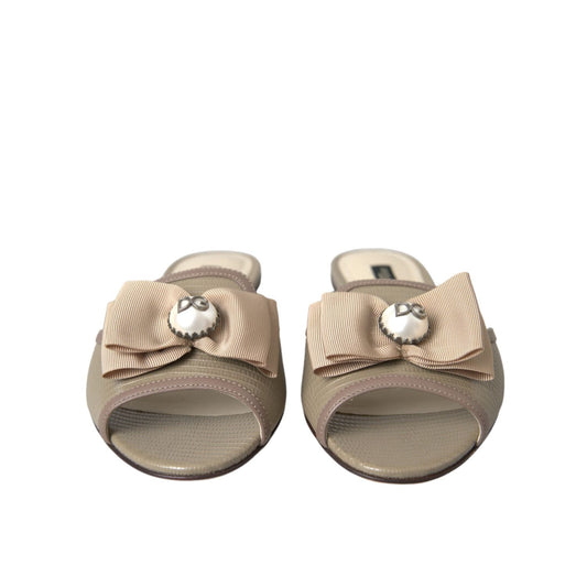 Dolce & Gabbana Beige Logo Pearl Flats Sandals Slides Shoes