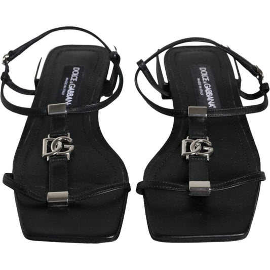 Dolce & Gabbana Black Leather Logo Ankle Strap Keira Sandals Shoes