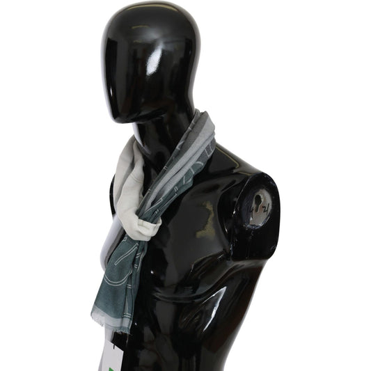 GF Ferre Gray Wool Viscose Foulard Patterned Branded Scarf