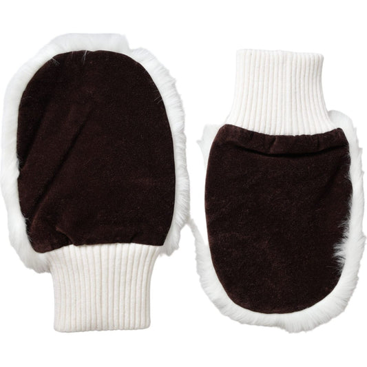Dolce & Gabbana Brown White Acrylic Knitted Fur Mitten Gloves
