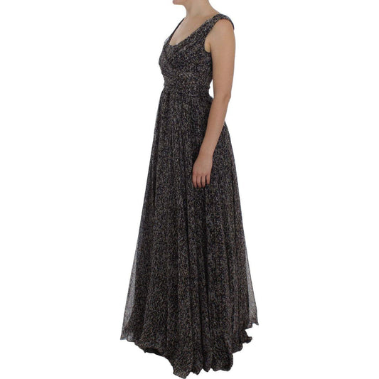 Dolce & Gabbana Multicolor Silk Floral Crystal Long Maxi Dress