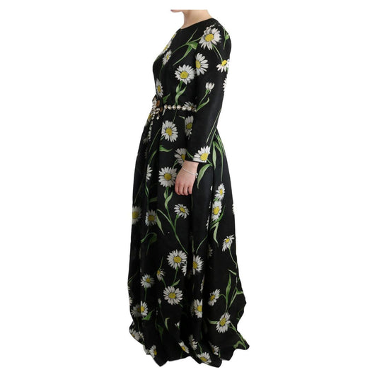 Dolce & Gabbana Multicolor Silk Sunflower Print Long Maxi Dress