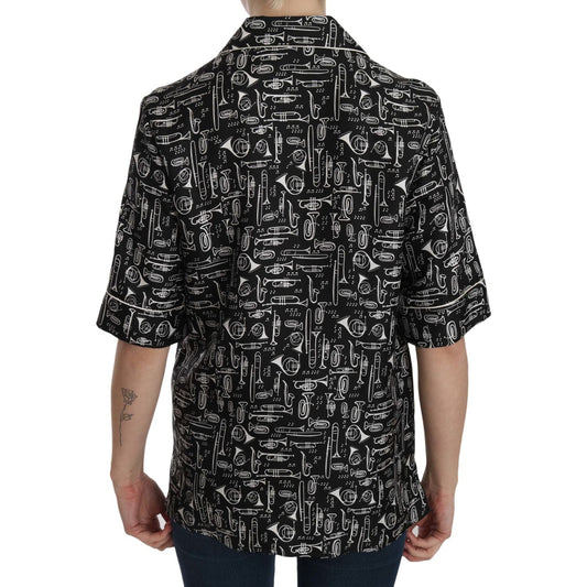 Dolce & Gabbana Black Musical Instrument Print Silk Top