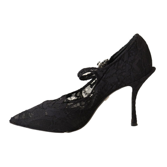 Dolce & Gabbana Black Mary Jane Pumps Lace Crystals Heels Shoes