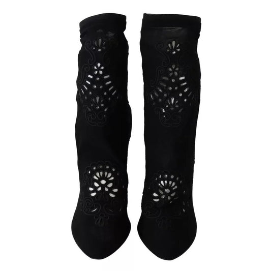 Dolce & Gabbana Black Stretch Pumps Boots Floral Lace Shoes