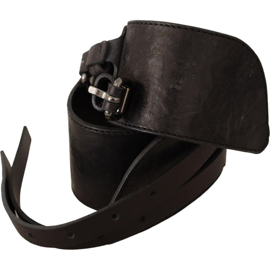 Costume National Brown Leather Tactical Logo Screw Buckle Belt