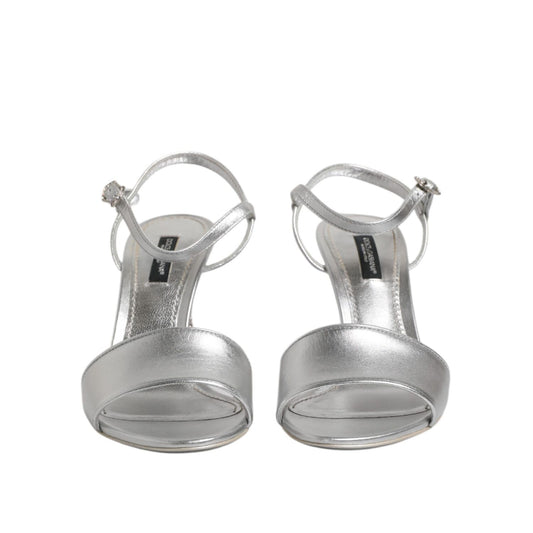 Dolce & Gabbana Silver Leather DG Heels Keira Sandals Shoes